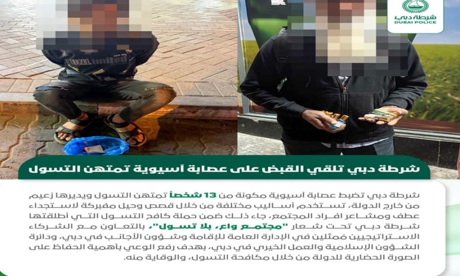 ദുബൈയിൽ വിദേശി നയിക്കുന്ന 13 അംഗ ഭിക്ഷാടന സംഘം പിടിയിൽ