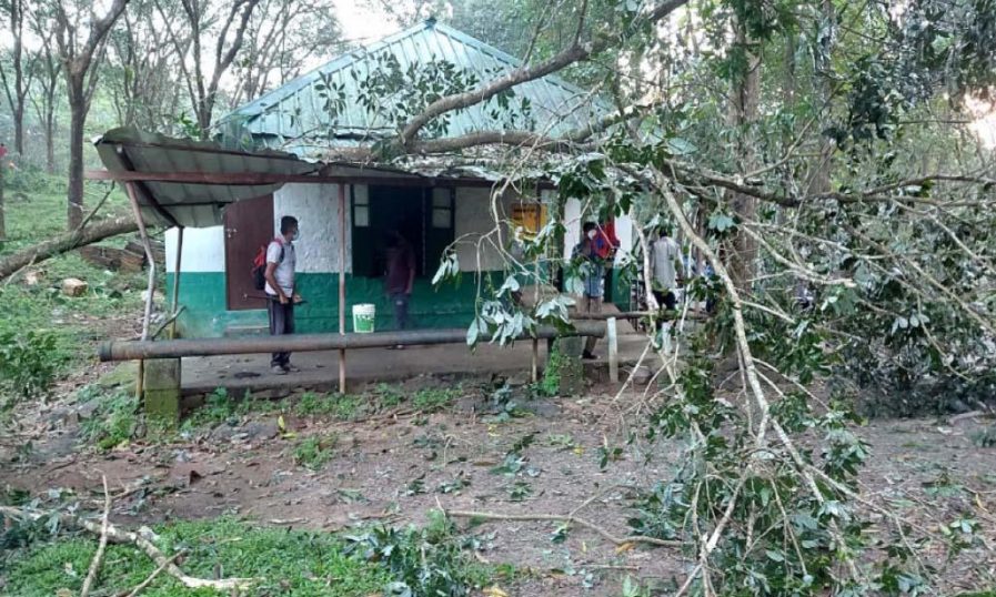 സമീപമുള്ള റോഡരികിലെ വൈദ്യുതി ലൈനിലേക്ക് മരങ്ങൾ മറിഞ്ഞതിനാലുണ്ടായ ഇലക്ട്രിക് ഷോക്കിൽ പ്രകോപിതരായ ആനകൾ ഓഫീസ് കെട്ടിടത്തിന്റെ മേച്ചിൽ അടക്കം നശിപ്പിച്ചു. ഇന്നലെ പുലർച്ചെ ആറരയോടെയാണ് സംഭവം.