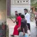 Afghanistan fans beating a supporter of Pakistan cricket team outside the cricket stadium in Leeds. 🏟