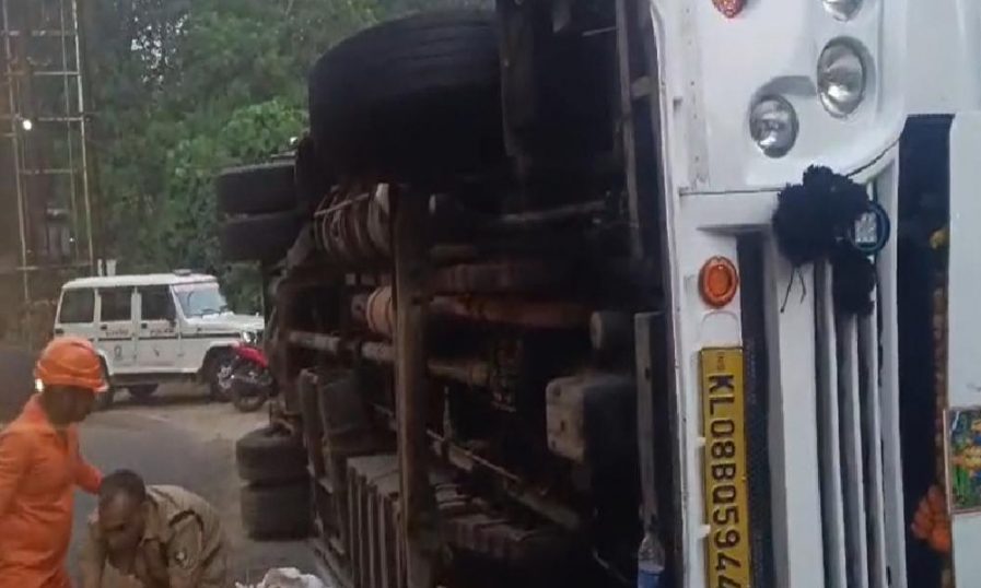 റോഡിലെ വളവില് നിയന്ത്രണം നഷ്ടപ്പെട്ടതാണ് അപകടകാരണമെന്നാണ് പ്രാഥമിക വിവരം. പരുക്കേറ്റവരെ ഉടന് സമീപത്തെ ആശുപത്രിയില് പ്രവേശിപ്പിച്ചു. ആരുടെയും നില ഗുരുതരമല്ലെന്ന് ആശുപത്രി അധികൃതര് അറിയിച്ചു. വാഹനത്തില് ഇരുപതോളം പേരായിരുന്നു ഉണ്ടായിരുന്നു. അപകടത്തെ തുടര്ന്ന് കുറച്ചുസമയം ഗതാഗതം തടസപ്പെട്ടു. ഫയര്ഫോഴ്സും പോലീസും സ്ഥലത്തെത്തി രക്ഷാപ്രവര്ത്തനങ്ങള് ഏകോപിച്ചു.