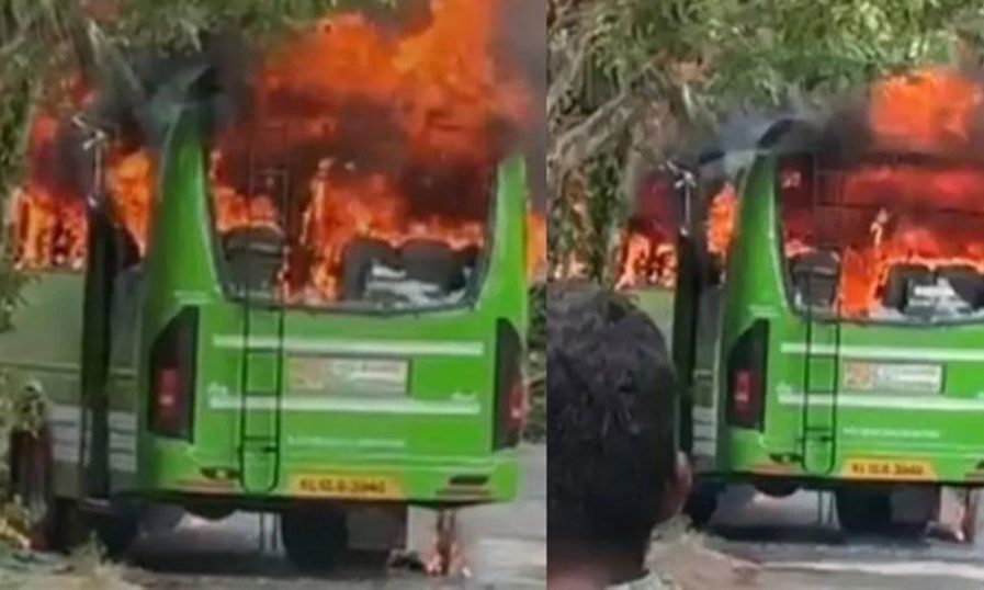 കോഴിക്കോട് ഓടിക്കൊണ്ടിരുന്ന ബസിന് തീപിടിച്ചു