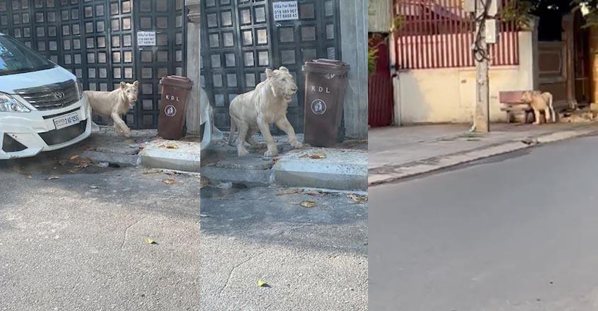 തെരുവില് അലഞ്ഞുതിരിഞ്ഞ് സിംഹം; ഭീതിയോടെ ജനങ്ങള്