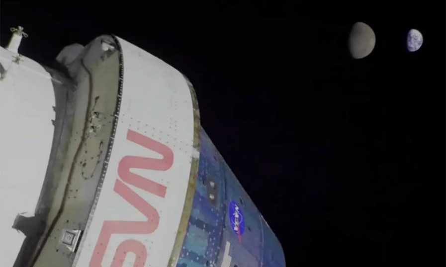 ചന്ദ്രനും ഭൂമിയും ഒരേ ഫ്രെയിമിൽ. ഓറിയോണിലെ ബഹിരാകാശയാത്രികർ പകർത്തിയ ചിത്രം. മനുഷ്യർ ഇതുവരെ ബഹിരാകാശത്തേക്ക് ഏറ്റവും ദൂരം സഞ്ചരിച്ച ചരിത്രപരമായ പറക്കൽ നടത്തുന്നതിന് മുമ്പ് അവസാനമായി എടുത്ത ചിത്രമാണിത്.