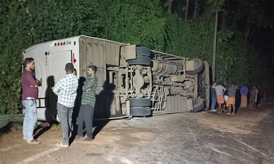 മൂന്നാറിലേക്ക് വിനോദയാത്ര പോയ വിദ്യാര്ഥികള് സഞ്ചരിച്ച ബസ് മറിഞ്ഞു; നിരവധി പേര്ക്ക് പരുക്ക്