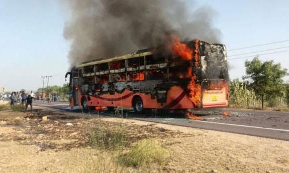 രാജസ്ഥാനില് ഓടിക്കൊണ്ടിരുന്ന ബസിന് തീപ്പിടിച്ചു; 19 മരണം