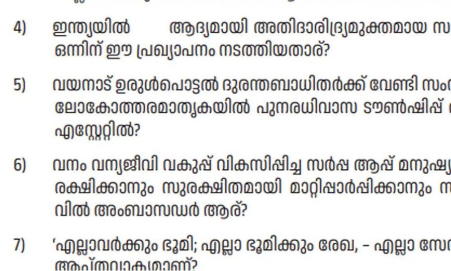 അതിദാരിദ്ര മുക്തമായി കേരളത്തെ പ്രഖ്യാപിച്ചത് ആരാണ് എന്നതടക്കമാണ് ചോദ്യങ്ങളിലുള്ളത്.