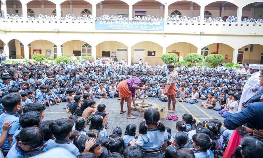 മലപ്പുറം | ലോക മണ്ണ് ദിനത്തിന്റെ ഭാഗമായി മേല്മുറി മഅ്ദിന് പബ്ലിക് സ്കൂളിന് കീഴില് വ്യത്യസ്തങ്ങളായ പരിപാടികള് സംഘടിപ്പിച്ചു. ഒന്നാം ക്ലാസ്സ് വിദ്യാര്ഥികള് കള്ളിമുണ്ടും ബനിയനും ധരിച്ചാണ് സ്കൂളിലെത്തിയത്. നുകം ഉപയോഗിച്ച് നിലം ഉഴുതുന്ന രീതി വളരെ കൗതുകത്തോടെയാണ് കുട്ടികള് വീക്ഷിച്ചത്. യന്ത്രവത്കൃത ലോകത്തിനു മുമ്പ് കൃഷി രീതിക്ക് നിലം ഒരുക്കിയിരുന്ന രീതി കുട്ടികളെ മനസ്സിലാക്കുക എന്നതായിരുന്നു പരിപാടിയുടെ ലക്ഷ്യം. മനുഷ്യനും കൃഷിയുമായുള്ള ബന്ധം പഴയകാലത്ത് എത്രത്തോളം ഉണ്ടായിരുന്നുവെന്നും വിദ്യാര്ഥികളെ ബോധ്യപ്പെടുത്തി.
