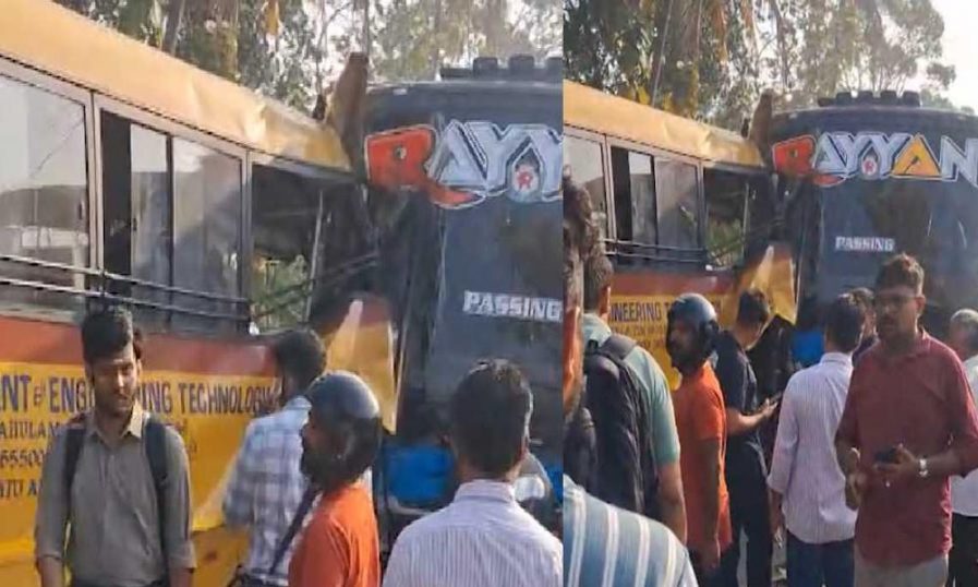 എറണാകുളം പൂക്കാട്ടുപടിയില് കോളജ് ബസും സ്വകാര്യ ബസും കൂട്ടിയിടിച്ച് അപകടം; നാല് വിദ്യാര്ത്ഥികള്ക്ക് പരുക്ക്