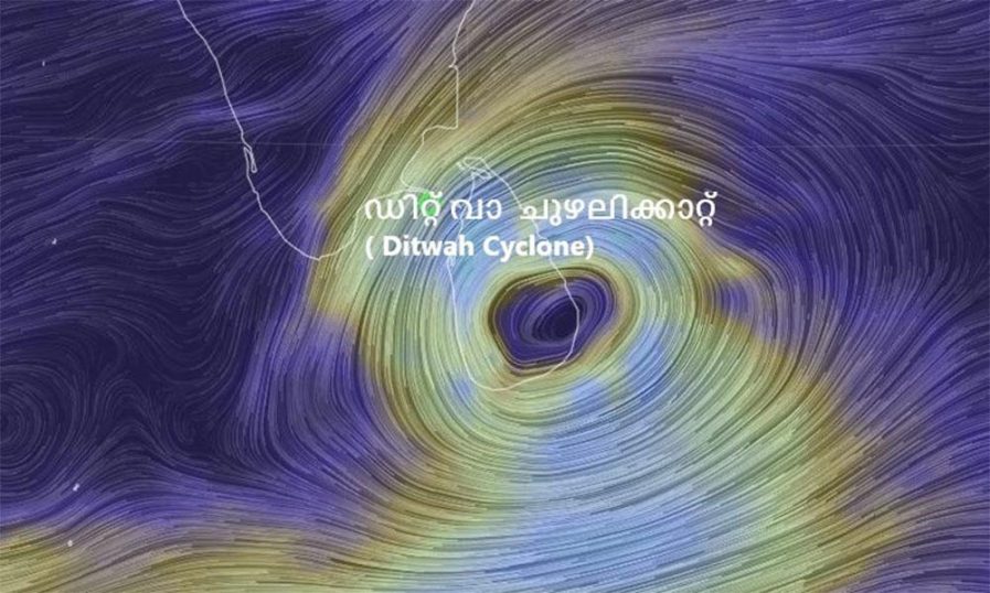 തിരുവനന്തപുരം | തെക്കുപടിഞ്ഞാറൻ ബംഗാൾ ഉൾക്കടലിനും സമീപമുള്ള ശ്രീലങ്കൻ തീരത്തിനും മുകളിലായി സ്ഥിതി ചെയ്തിരുന്ന അതിതീവ്ര ന്യൂനമർദ്ദം (ഡീപ് ഡിപ്രഷൻ) ‘ഡിറ്റ് വാ’ (Ditwah) ചുഴലിക്കാറ്റായി ശക്തിപ്രാപിച്ചു.