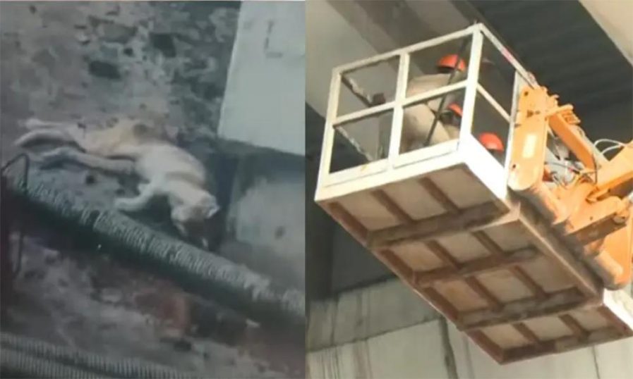 ഫയർഫോഴ്സ് സംഘവും ആനിമൽ റെസ്ക്യൂ സംഘവും ചേർന്നാണ് രക്ഷാദൗത്യം നടത്തുന്നത്.