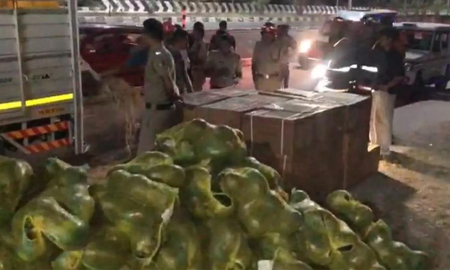 തണ്ണിമത്തന് ചാക്കുകള്ക്കിടയില് സ്ഫോടകവസ്തു; ചരക്കുലോറി പോലീസ് പിടികൂടി