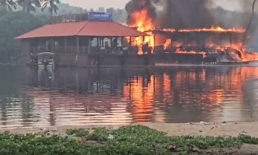 Kerala തിരുവനന്തപുരം പൂവാറിലെ ഫ്ലോട്ടിംഗ് റസ്റ്റോറന്റിൽ തീപിടുത്തം തീപിടുത്തത്തില് ആളപായമില്ല. Published Apr 13, 2026 3:58 pm | Last Updated Apr 13, 2026 3:58 pm By വെബ് ഡെസ്ക് തിരുവനന്തപുരം| തിരുവനന്തപുരം പൂവാറില് ഫ്ളോട്ടിങ് റസ്റ്ററന്റില് തീപിടിച്ചു. ഇന്ന് പുലര്ച്ചെയായായിരുന്നു സംഭവം. ഷോര്ട് സര്ക്യൂട്ടാണ് തീപിടിത്തത്തിനു കാരണമെന്നാണ് പ്രാഥമിക നിഗമനം. തീപിടുത്തത്തില് ആളപായമില്ല. Related Topics: restaurant fire You may like ശബരിമല സ്വര്ണക്കൊള്ളക്കേസ്; കെ പി ശങ്കരദാസിന് സ്വാഭാവിക ജാമ്യം ബിഡിഎസ് വിദ്യാര്ഥി നിതിന് രാജിന്റെ മരണം; അന്വേഷണത്തിന് ഉത്തരവിട്ട് ദേശീയ പട്ടികജാതി കമ്മീഷന് പുനലൂര് പോലീസ് സ്റ്റേഷനില് തീ കൊളുത്തി യുവാവിന്റെ ആത്മഹത്യാശ്രമം; നില ഗുരുതരം ഇറാന് തുറമുഖങ്ങള്ക്കുമേല് യുഎസ് ഉപരോധം; ക്രൂഡ് ഓയില് വില കുതിച്ചുയരുന്നു ഇടുക്കി ഉടുമ്പന്നൂരില് മദ്യലഹരിയില് പിതാവിന്റെ ക്രൂരത;15കാരനെ മര്ദിച്ച പിതാവ് പിടിയില് ജെയിംസ് ബോണ്ട് സ്റ്റൈലിൽ നമ്പർ പ്ലേറ്റ് മാറ്റുന്ന ബി എം ഡബ്ല്യു; ഹൈദരാബാദിൽ മദ്യപിച്ചെത്തിയ ഡോക്ടർ പിടിയിൽ ---- facebook comment plugin here ----- LatestNationalപെട്രോളിനും ഗ്യാസിനും പിന്നാലെ ഇന്ത്യയ്ക്ക് അടുത്ത പ്രഹരം; നിത്യജീവിതത്തെ ബാധിക്കുന്ന ആ പ്രധാന വസ്തുവിനും ക്ഷാമം വരുന്നു!Keralaതിരുവനന്തപുരം സെക്രട്ടറിയേറ്റിന് മുന്നിലെ മരം ഒടിഞ്ഞുവീണുNationalജെയിംസ് ബോണ്ട് സ്റ്റൈലിൽ നമ്പർ പ്ലേറ്റ് മാറ്റുന്ന ബി എം ഡബ്ല്യു; ഹൈദരാബാദിൽ മദ്യപിച്ചെത്തിയ ഡോക്ടർ പിടിയിൽKeralaതിരുവനന്തപുരം പൂവാറിലെ ഫ്ലോട്ടിംഗ് റസ്റ്റോറന്റിൽ തീപിടുത്തംKeralaബൈക്ക് കാറുമായി കൂട്ടിയിടിച്ച് യുവാവിന് ദാരുണാന്ത്യംKeralaതിരുവനന്തപുരം പാളയത്ത് പെട്രോൾ പമ്പിൽ കവർച്ച; ഒന്നരലക്ഷം രൂപ കവര്ന്നുKeralaടിപ്പര് ബൈക്കില് ഇടിച്ച് രണ്ട് വിദ്യാര്ഥികള് മരിച്ചു