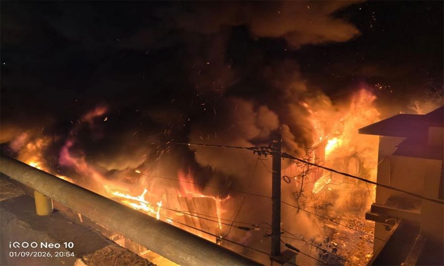 മീഞ്ചന്തയില് നിന്നെത്തിയ രണ്ട് യൂനിറ്റ് ഫയര്ഫോഴ്സ് രാത്രി പത്തോടെയാണ് തീ നിയന്ത്രണവിധേയമാക്കിയത്. പന്നിയങ്കര പോലീസും സ്ഥലത്തെത്തി സ്ഥിതിഗതികള് നിയന്ത്രിച്ചു. തീപ്പിടിത്തത്തിന്റെ കാരണം വ്യക്തമല്ല. ലക്ഷങ്ങളുടെ നഷ്്ടം കണക്കാക്കുന്നു.