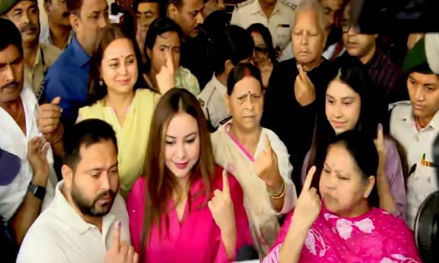 ബിഹാറില് ആദ്യ ഘട്ട വോട്ടെടുപ്പ് പുരോഗമിക്കുന്നു; മഹാസഖ്യത്തിന്റെ മുഖ്യമന്ത്രി സ്ഥാനാര്ത്ഥി തേജസ്വി യാദവും കുടുംബവും വോട്ട് രേഖപ്പെടുത്തി