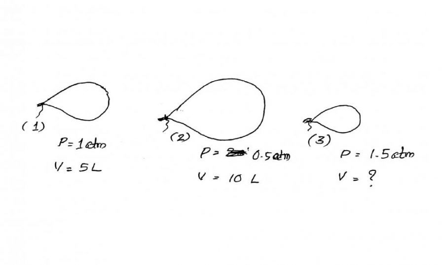 വ്യത്യസ്ത മർദങ്ങളിൽ സ്ഥിതിചെയ്യുന്ന ഒരേ ബലൂണിന്റെ ചിത്രീകരണങ്ങളാണ് മുകളിൽ നൽകിയത്.