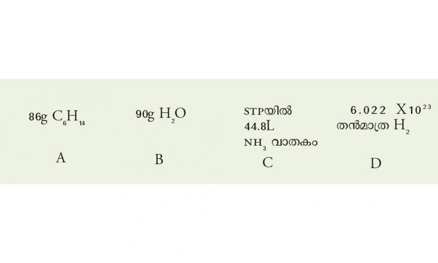 a. ഓരോന്നിന്റെയും മോൾ എണ്ണം കണ്ടെത്തി ആരോഹണ ക്രമത്തിൽ എഴുതുക (2)