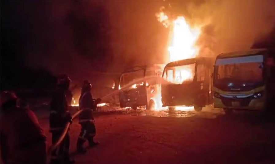 പുലര്ച്ചെ നാല് സ്കൂള് ബസ്സുകള് കത്തിനശിച്ചു; ആരോ തീയിട്ടതായി ആരോപണം