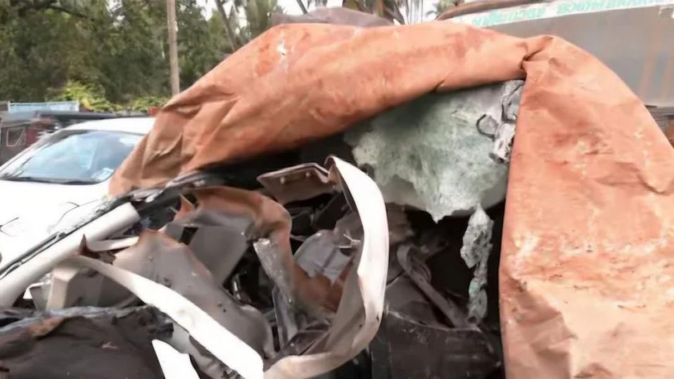 Four young men lost their lives in a tragic collision between a car and a lorry at Modern Bazar in Ramanattukara, Kozhikode, early Saturday morning. The victims, who were returning from a festival, were trapped inside the vehicle and had to be extracted by the Fire and Rescue services using cutters. While three died on the spot, one succumbed to injuries at a private hospital, and another person remains under treatment.
