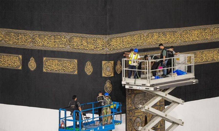 ഹജ്ജ് :വിശുദ്ധ കഅബയുടെ കിസ്വ ഉയര്ത്തികെട്ടി