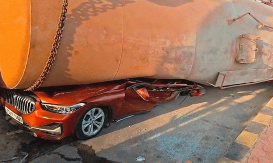 ബി എം ഡബ്ല്യു കാറിന് മുകളിലേക്ക് ടാങ്കർ ലോറി മറിഞ്ഞു; ഹൈക്കോടതി അഭിഭാഷകന് ദാരുണാന്ത്യം