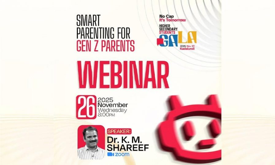 കോഴിക്കോട്|കേരള മുസ്്ലിം ജമാഅത്ത് കേരള യാത്രയുടെ ഭാഗമായി എസ് എസ് എഫ് കോഴിക്കോട് സൗത്ത് ജില്ലാ കമ്മിറ്റി സംഘടിപ്പിക്കുന്ന ഹയര് സെക്കന്ഡറി സ്റ്റുഡന്റ്സ് ഗാലയുടെ മുന്നോടിയായുള്ള പാരന്റിംഗ് വെബിനാര് ഇന്ന്. ‘ജെന് സി പ്രശ്നക്കാരല്ല; പേരന്റിംഗ് കരുതലോടെയാകാം’ എന്ന വിഷയത്തില് നടക്കുന്ന വെബിനാറില് കോളജ് അധ്യാപകനും പരിശീലകനുമായ ഡോ. കെ എം ശരീഫ് സംസാരിക്കും. രാത്രി 8 മണി മുതല് സൂം പ്ലാറ്റ് ഫോമിലാണ് വെബിനാര് നടക്കുന്നത്. എസ് എസ് എഫ് ജില്ലാ പ്രസിഡന്റ് ശാദില് നൂറാനി അധ്യക്ഷത വഹിക്കും.