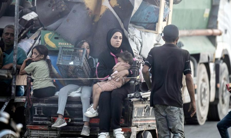 ഇസ്റാഈലിന്റെ ഉപരോധം മൂലം ഇന്ധന വിതരണം നിലച്ച ഗസ്സയിൽ, പലായനത്തിനിടെ നടന്ന് തളർന്നുവീണ് കുഞ്ഞുങ്ങൾ. വാഹനങ്ങൾക്കാവശ്യമായ ഇന്ധനം ലഭിക്കാതെ സ്ത്രീകളും കുട്ടികളും കൂട്ടത്തോടെ പൊരിവെയിലിൽ നടന്നുനീങ്ങുകയാണ്. പലരും വഴിയിൽ തളർന്നുവീണു. വെള്ളമോ ഭക്ഷണമോ ഇല്ലാതെയാണ് കിലോമീറ്ററുകളോളം നടന്ന് സുരക്ഷിതമെന്ന് പറയപ്പെടുന്ന സ്ഥലങ്ങളിലേക്കെത്തുന്നത്.