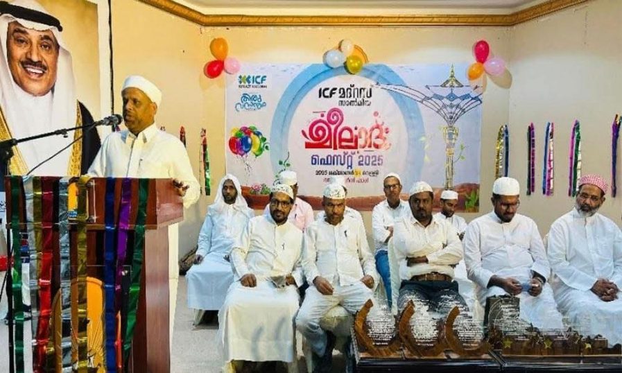 കുവൈത്ത് സിറ്റി | ഐ സി എഫ് സാല്മിയ മദ്റസയുടെ കീഴില് സംഘടിപ്പിച്ച തിരുവസന്തം-1500 മീലാദ് ഫെസ്റ്റിന് വര്ണാഭമായ സമാപനം. ദസ്മ ടീച്ചേഴ്സ് ഹാളില് നടന്ന ചടങ്ങില് മദ്റസ വിദ്യാര്ഥികളുടെ വിവിധ കലാപരിപാടികള് അരങ്ങേറി. ദഫ് പ്രദര്ശനം, ഫ്ളവര് ഷോ, സ്കൗട്ട്, ഖവാലി, ബുര്ദ പാരായണം തുടങ്ങിയവ ചടങ്ങിനെ ആകര്ഷകമാക്കി. ക്വിസ് മത്സരം, എക്സിബിഷന്, വിദ്യാര്ഥികളുടെ കാലിഗ്രഫി പ്രദര്ശനം തുടങ്ങിയവയും സംഘടിപ്പിച്ചു.