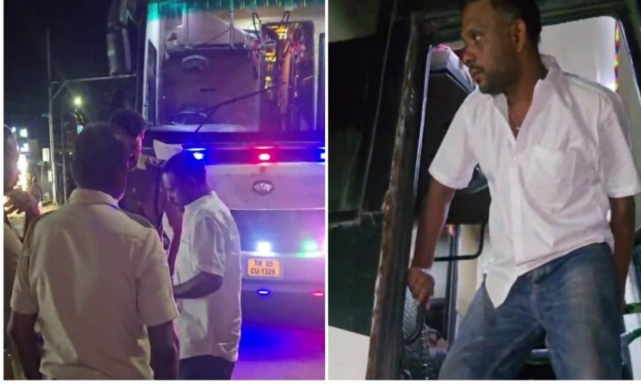 അന്തര്സംസ്ഥാന സ്വകാര്യ ബസ് ഡ്രൈവര് മദ്യലഹരിയില് അപകടകരമായി ബസ്സ് ഓടിച്ചു; പിടികൂടി