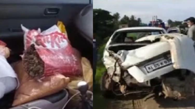 സംഭവത്തില് മഞ്ചേരി സ്വദേശികളായ രാജേഷ്, ശിഹാബ് എന്നിവരാണ് പിടിയിലായത്. അപകടത്തില്പ്പെട്ട സ്വിഫ്റ്റ് കാര് ഏതാണ്ട് പൂര്ണമായും തകര്ന്നു. ഓടിരക്ഷപെടാന് ശ്രമിക്കുന്നതിനിടെയാണ് പ്രതികളെ പിടികൂടിയത്. അപകടത്തില് പ്രതികള്ക്ക് നിസാര പരുക്കേറ്റിരുന്നു