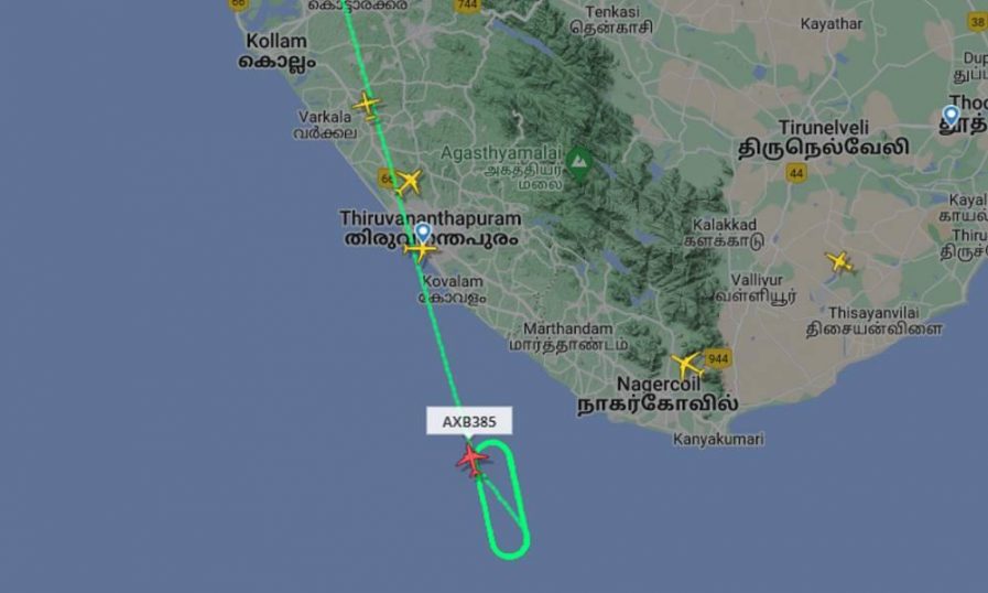 ഇന്ധനം വറ്റിക്കുന്നതിനായി വിമാനം തിരുവനന്തപുരം കന്യാകുമാരിഭാഗത്ത് അറബിക്കടലിന് മുകളിൽ ഏഴ് തവണ വട്ടമിട്ട് പറന്ന ശേഷമാണ് തിരുവനന്തപുരം വിമാനത്താവളത്തിൽ സുരക്ഷിതമായി ഇറക്കിയത്. ഒരു മണിക്കൂർ നേരമാണ് വിമാനം ആകാശത്ത് വട്ടമിട്ടത്.