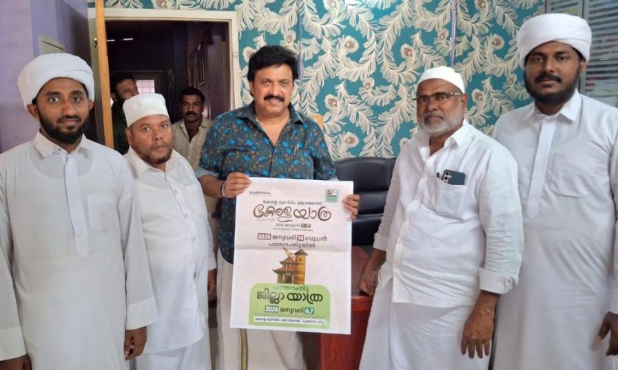 പത്തനംതിട്ട \ മനുഷ്യര്ക്കൊപ്പം എന്ന പ്രമേയത്തില് കേരള മുസ്ലിം ജമാഅത്ത് സംസ്ഥാന കമ്മിറ്റിയുടെ നേതൃത്വത്തില് ആരംഭിക്കുന്ന കേരള യാത്രയ്ക്ക് ജനുവരി 14ന് പത്തനംതിട്ടയില് നല്കുന്ന സ്വീകരണ സമ്മേളനത്തിന്റെ പോസ്റ്റര് പ്രകാശനം ഗതാഗത വകുപ്പ് മന്ത്രി കെ ബി ഗണേഷ് കുമാര് നിര്വ്വഹിച്ചു