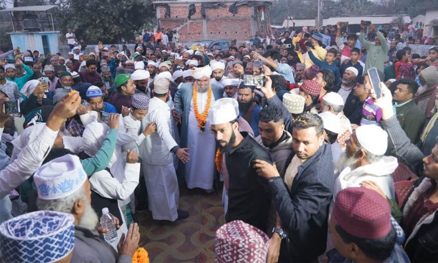 കേരള മുസ്ലിം ജമാഅത്ത് സംസ്ഥാന ജനറല് സെക്രട്ടറിയും ബംഗാള് യാത്രാ നായകനുമായ സയ്യിദ് ഇബ്റാഹീമുല് ഖലീലുല് ബുഖാരിയെ ഇസ്ലാംപൂരില് ഭഗവാന്പൂര്ചൗകിലെ സ്വീകരണ സമ്മേളനത്തിലേക്ക് ആനയിക്കുന്നു