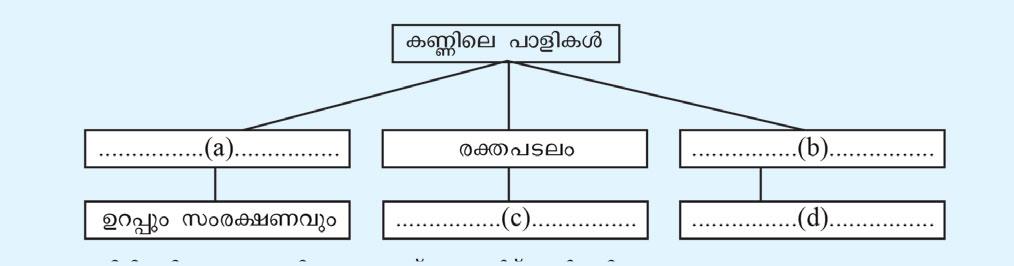 കണ്ണിലെ പാളികളെയും അവയുടെ ധർമങ്ങളെയും കുറിച്ചുള്ള ചിത്രീകരണം പൂർത്തിയാക്കുക