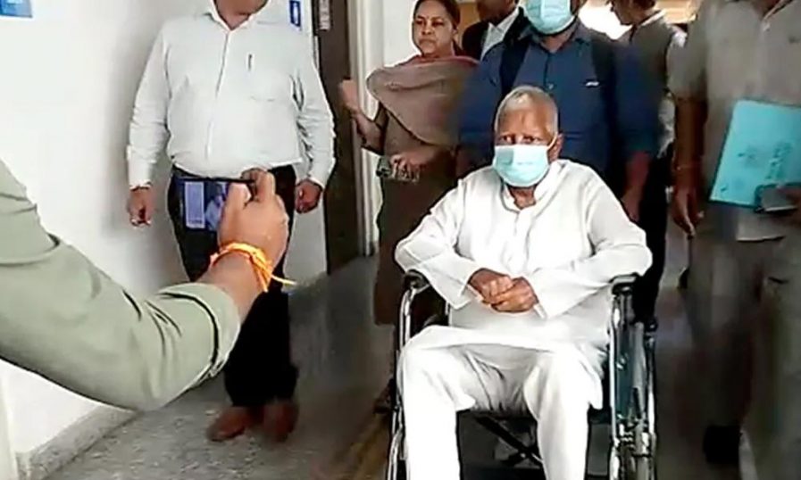 ഭൂമി തട്ടിപ്പ് കേസ്: സിബിഐ ചോദ്യം ചെയ്യലിന് ലാലു പ്രസാദ് യാദവ് വീല്ചെയറിലെത്തി
