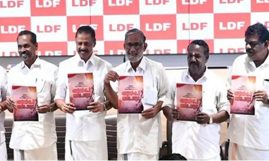 ഇടതു മുന്നണി പ്രകടന പത്രിക പുറത്തിറക്കി; കേരളത്തെ കേവല ദാരിദ്ര്യത്തില് നിന്ന് മോചിപ്പിച്ച് സമ്പൂര്ണ പോഷകാഹാര സംസ്ഥാനമാക്കി മാറ്റും