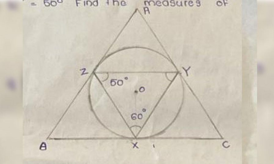 <ZXY = 600 , <XZY = 500 ആയാൽ <A <B <C യുടെ അളവുകൾ കണ്ടെത്തുക.