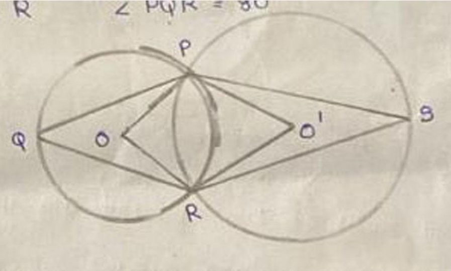 22. ചിത്രത്തിൽ O, O’ വൃത്ത കേന്ദ്രങ്ങളാണ്. P, R എന്നീ ബിന്ദുക്കൾ രണ്ട് വൃത്തങ്ങൾ കൂട്ടിമുട്ടുന്ന ബിന്ദുക്കളാണ്.