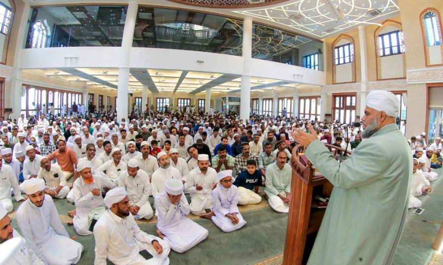മഅദിന് ഗ്രാന്റ് മസ്ജിദില് പെരുന്നാള് നിസ്കാരത്തിന് നേതൃത്വം നല്കിയ ശേഷം മഅദിന് അക്കദാമി ചെയര്മാന് സയ്യിദ് ഇബ്റാഹീമുല് ഖലീല് അല് ബുഖാരി ഈദ് സന്ദേശ പ്രഭാഷണം നടത്തുന്നു.