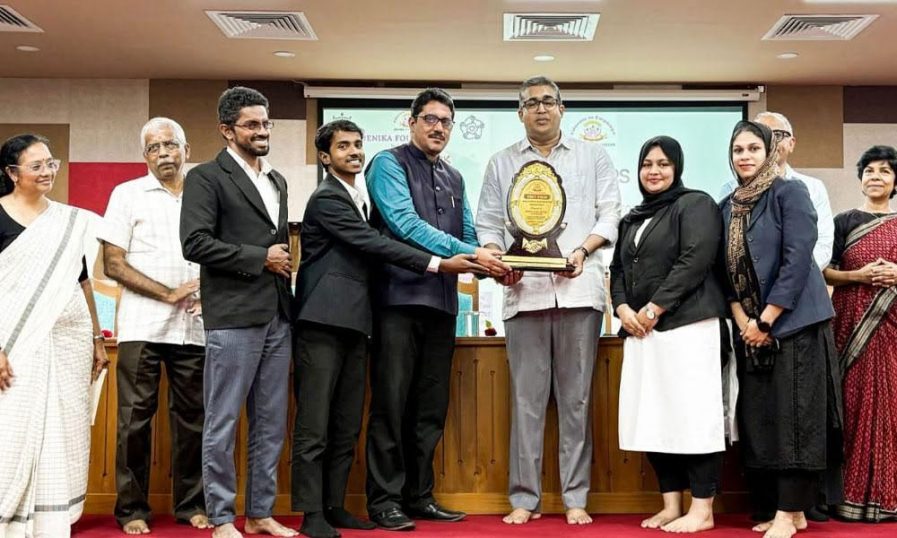 ഓള് ഇന്ത്യാ സോഷ്യല് വര്ക്ക് എക്സലന്സി അവാര്ഡ് ജസ്റ്റിസ് ബിജു എബ്രഹാം മര്കസ് ലോ കോളജ് പ്രതിനിധികള്ക്ക് സമ്മാനിക്കുന്നു.
