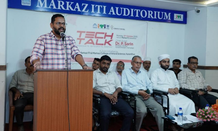 ഫോട്ടോ: മര്കസ് ഐ ടി ഐ ‘ടെക് ടോക്’ വിജ്ഞാന കേരളം സ്ട്രാറ്റജിക് അഡൈ്വസര് ഡോ.പി സരിന് ഉദ്ഘാടനം ചെയ്യുന്നു.