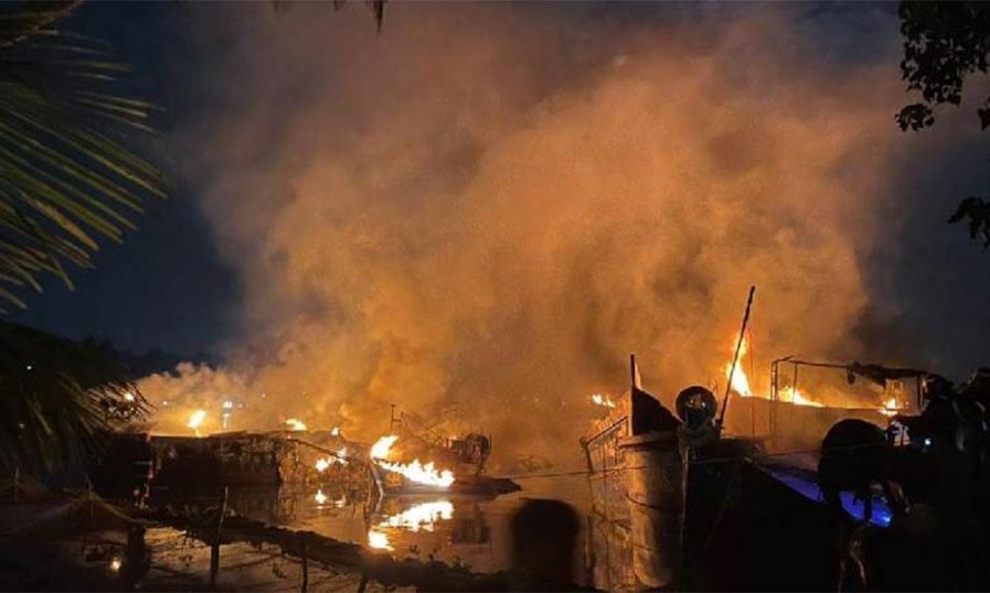 അപകടത്തില് ആര്ക്കും പരുക്കേറ്റിട്ടില്ല. ബോട്ടുകളിലുണ്ടായിരുന്ന ഗ്യാസ് സിലിണ്ടറുകള് പൊട്ടിത്തെറിച്ചത് അപകടത്തിന്റെ വ്യാപ്തി വര്ധിപ്പിച്ചു.