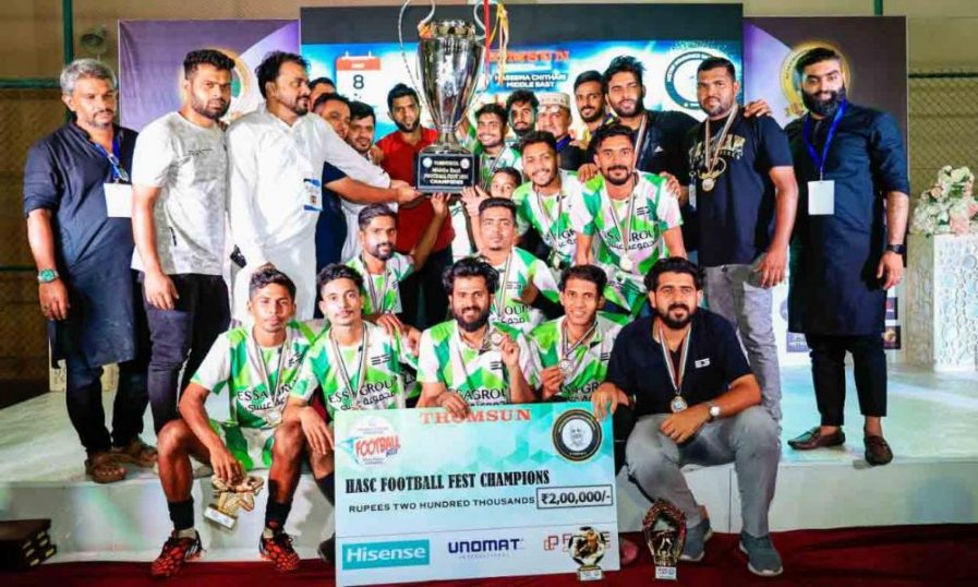 ദുബൈ | ചിത്താരി ഹസീന ആർട്സ് ആൻഡ് സ്പോർട്സ് ക്ലബ് ജി സി സി കമ്മിറ്റി ദുബൈ ഖിസൈസ് വുഡ്ലേം പാർക്ക് സ്കൂൾ ഗ്രൗണ്ടിൽ സംഘടിപ്പിച്ച മർഹും മെട്രോ മുഹമ്മദ് ഹാജി മെമ്മോറിയൽ ഫുട്ബോൾ ടൂർണമെന്റിൽ ഈസാ ഗ്രൂപ്പ് ചെർപ്പുളശ്ശേരി ചാമ്പ്യന്മാരായി. യു എ ഇയുടെ വിവിധ ഭാഗങ്ങളിൽ നിന്നുള്ള 16 ടീമുകൾ പങ്കെടുത്ത മത്സരത്തിൽ ഹസീന ആർട്സ് ആൻഡ് സ്പോർട്സ് ക്ലബ് ചിത്താരി രണ്ടാം സ്ഥാനം കരസ്ഥമാക്കി. ഇന്ത്യൻ ഫുട്ബോൾ താരം മുഹമ്മദ് റാഫി ഒന്നാം സ്ഥാനക്കാർക്കും ക്ലബ് പ്രസിഡന്റ് താജുദ്ധീൻ അക്കര രണ്ടാം സ്ഥാനക്കാർക്കും ട്രോഫി വിതരണം ചെയ്തു. ഒന്നാം സ്ഥാനക്കാർക്ക് രണ്ട് ലക്ഷം രൂപയും രണ്ടാം സ്ഥാനക്കാർക്ക് ഒരു ലക്ഷം രൂപയുമാണ് പാരിതോഷികം നൽകിയത്.