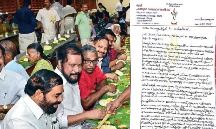 ദേവന് നിവേദിക്കും മുമ്പ് മന്ത്രിക്ക് ഭക്ഷണം നല്കി; ആറന്മുള വള്ളസദ്യയില് ആചാരലംഘനമെന്ന് ആരോപണം