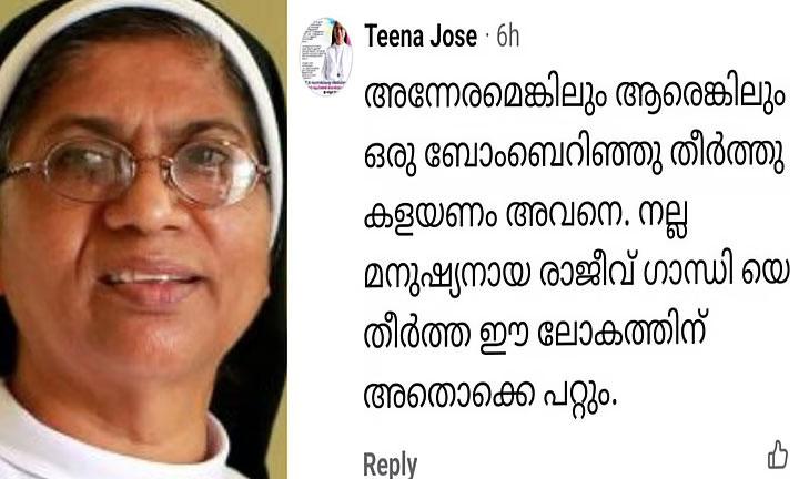 മുഖ്യമന്ത്രിക്കെതിരെ കൊലവിളി കമന്റ്; കന്യാസ്ത്രീക്കെതിരെ കേസ്