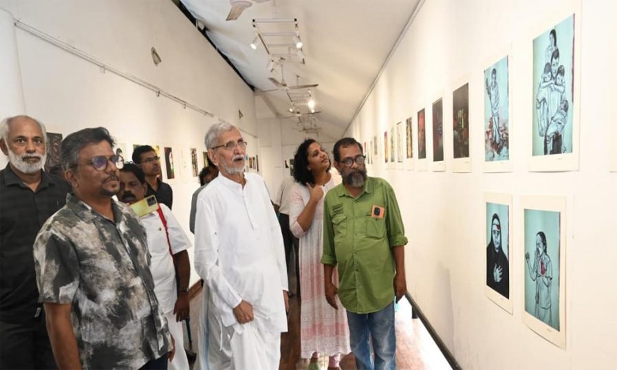 ഗാസയിലെ കുട്ടികള്ക്കും അമ്മമാര്ക്കും സമര്പ്പിക്കുന്ന പോട്രെയിറ്റ്, പെയിന്റിങ്ങ് പ്രദര്ശനം ലളിതകലാ അക്കാദമി ആര്ട്ട് ഗാലറിയില് കവി സുധ്യാംശു ഉദ്ഘാടനം ചെയ്തു