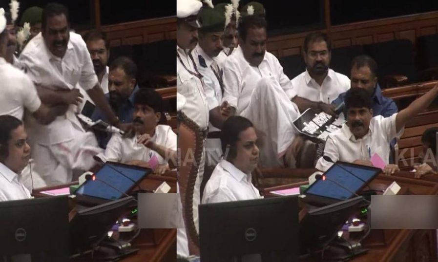 സ്പീക്കറുടെ ഡയസിന് മുകളിലേയ്ക്ക് ചാടിക്കയറാന് പ്രതിപക്ഷ എംഎല്എമാരുടെ ശ്രമം. പിന്നാലെ സ്പീക്കര് ഡയസ് വിട്ട് എഴുന്നേറ്റ് പോയി.