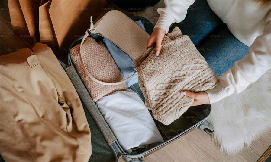 വസ്ത്രങ്ങൾ ചുരുട്ടി പാക്ക് ചെയ്യുന്നത് കൂടുതൽ സ്ഥലം ലഭിക്കാനും വൃത്തിയോടെ ഇരിക്കാനും സഹായിക്കുന്നു.