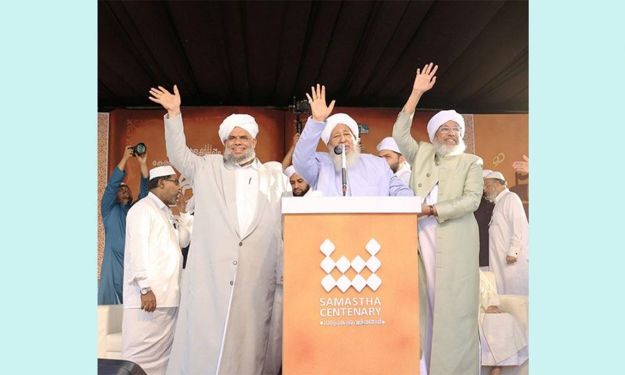 കേരളയാത്രക്ക് ഒറ്റപ്പാലത്ത് നല്കിയ സ്വീകരണത്തില് നായകൻ കാന്തപുരം എ പി അബൂബക്കര് മുസ്ലിയാര്, ഉപനായകരായ സയ്യിദ് ഇബ്റാഹീം ഖലീല് അല് ബുഖാരി, പേരോട് അബ്ദുര്റഹ്മാന് സഖാഫി എന്നിവര് സദസ്സിനെ അഭിവാദ്യം ചെയ്യുന്നു