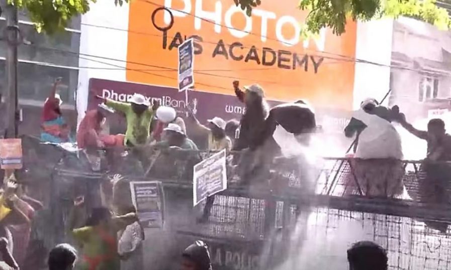 ആശാ വര്ക്കര്മാരെ പിരിച്ചുവിടാനായി പോലീസ് അഞ്ച് റൗണ്ട് ജലപീരങ്കി പ്രയോഗിച്ചു. കനത്ത മഴയേയും ജലപീരങ്കിയെയും അവഗണിച്ചുകൊണ്ട് ആശാ വര്ക്കര്മാര് ക്ലിഫ് ഹൗസിന്റെ മുന്നില് നിലയുറപ്പിക്കുകയായിരുന്നു. സമരം അനുവദിച്ചിരുന്ന സമയത്തിനും അപ്പുറത്തേക്ക് കടന്നുപോയതിനാലാണ് പോലീസ് നടപടി ഉണ്ടായതെന്നാണ് പോലീസിന്റെ ഭാഗത്തുനിന്നുള്ള വിശദീകരണം. ഓണറേറിയം വര്ധിപ്പിക്കുക, പെന്ഷന് ക്രമീകരണങ്ങള് ഉറപ്പാക്കുക, വിരമിക്കല് ആനുകൂല്യം നല്കുക എന്നീ ആവശ്യങ്ങള് ഉന്നയിച്ച് മാസങ്ങളായി സമരത്തിലാണ് ആശാ വര്ക്കര്മാര്.