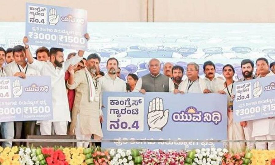 നേരത്തെ, മൂന്ന് വൻ വാഗ്ദാനങ്ങള് കോണ്ഗ്രസ്സ് മുന്നോട്ടുവെച്ചിരുന്നു. 200 യൂണിറ്റ് സൗജന്യ വൈദ്യുതി എല്ലാ വീടുകള്ക്കും നല്കുന്ന ഗൃഹ ജ്യോതി പദ്ധതി, ഗൃഹനാഥകള്ക്ക് പ്രതിമാസം 2,000 രൂപ നല്കുന്ന ഗൃഹലക്ഷ്മി, ബി പി എല് കുടുംബങ്ങള്ക്ക് 10 കിലോ അരി നല്കുന്ന അന്ന ഭാഗ്യ എന്നീ പദ്ധതികളാണ് നേരത്തെ പ്രഖ്യാപിച്ചത്. ഇതിനു പിന്നാലെയാണ് യുവാക്കളെയും യുവതികളെയും പാട്ടിലാക്കാനായി തൊഴില് രഹിത അലവന്സ് പ്രഖ്യാപിച്ചത്.